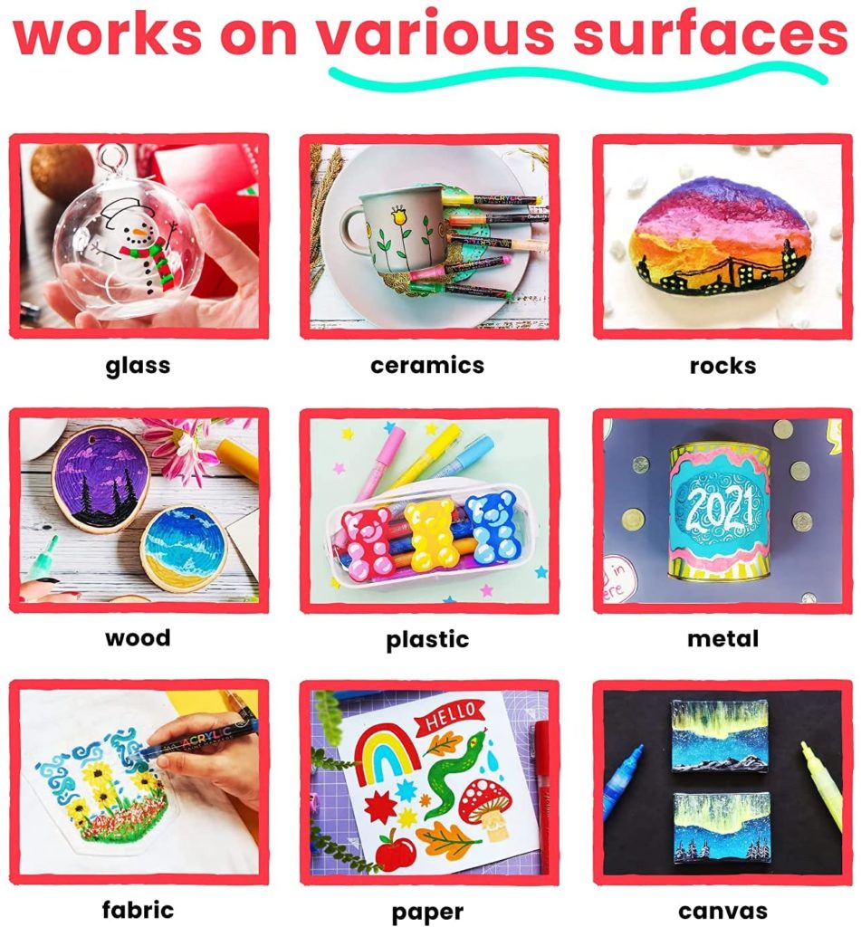 Whether you want to paint your new phone case, have a passion for rock painting, want to design your new skateboard or just want to create paintings on canvas, paint pens can do it all.